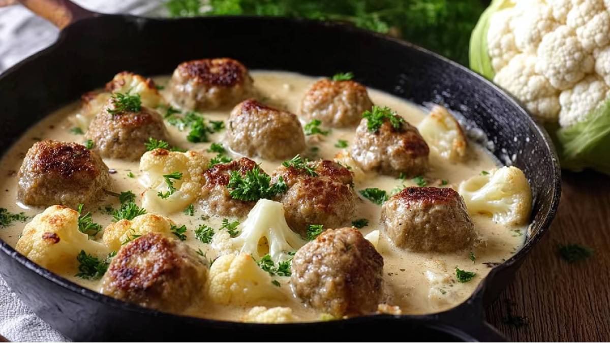 Zu meinen Lieblingskohlsorten gehört ganz klar der Blumenkohl. Ich mag ihn als Auflauf mit reichlich Käse überbacken, als Suppe, geröstet aus dem Ofen oder gebraten wie ein Steak. Aber auch in einer Pfanne in cremiger Soße ist er ziemlich lecker. Wenn dann noch würzige Hackbällchen dazu kommen, umso besser.